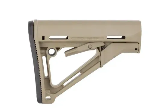 The Magpul CTR (Compact/Type Restricted) – Commercial-Spec Model is a drop-in replacement buttstock for AR15/M16 carbines using commercial-spec sized receiver extension tubes. Designed for light, fast action, the streamlined A-frame profile avoids snagging and shields the release latch to prevent accidental activation. The CTR also features a supplemental friction lock system that minimizes excessive stock movement for enhanced weapon stability, and an ambidextrous QD sling mount that will accept any push-button sling swivel. The Commercial-Spec Model includes an extended 0.55″ thick rubber butt-pad to provide positive shoulder purchase and accommodates the longer, slanted back common to most commercial-spec tubes.