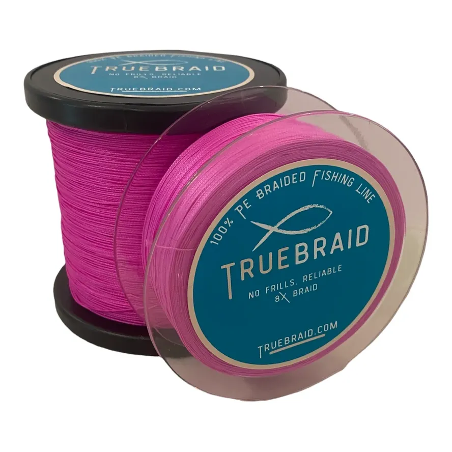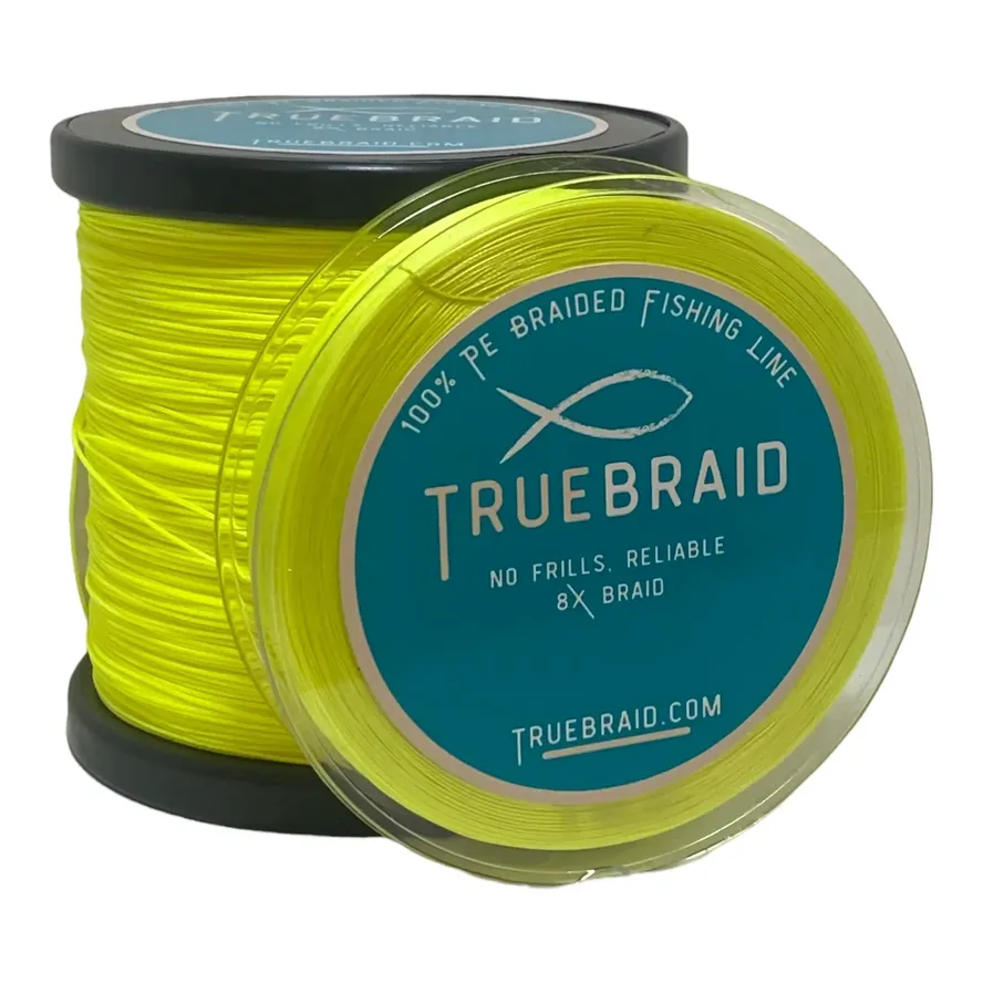 TrueBraid Braided Fishing Line – 8 Strand Solid Braided Fishing Line – Constructed from UHMWPE (Ultra High Molecular Weight Polyethylene) Fiber, commonly referred to as “spectra”. – Individual dye process makes it resistant to degradation from UV Light and fading. – Dry Coating achieves the appropriate strength and abrasion resistance with a very smooth character that is less prone to wind knots.
